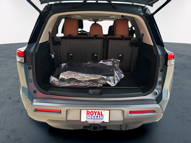 Cargo Package (Cargo Area Protector, Cargo Net, and First Aid), 13 Speakers, 3rd row seats: bench, 4-Piece Black Splash Guards, 4-Wheel Disc Brakes, ABS brakes, Air Conditioning, Alloy wheels, AM/FM radio: SiriusXM w/360L, Auto High-beam Headlights, Auto tilt-away steering wheel, Auto-dimming Rear-View mirror, Automatic temperature control, Bench Seat Carpeted Floor Mats, Bodyside moldings, Bose Premium Audio System, Brake assist, Bumpers: body-color, Climate Controlled Front Bucket Seats, Cross Bars, Delay-off headlights, Driver door bin, Driver vanity mirror, Dual front impact airbags, Dual front side impact airbags, Electronic Stability Control, Emergency communication system: NissanConnect Services, Four wheel independent suspension, Front anti-roll bar, Front Bucket Seats, Front Center Armrest, Front dual zone A/C, Front reading lights, Fully automatic headlights, Garage door transmitter: HomeLink, Heads-Up Display, Heated door mirrors, Heated front seats, Heated rear seats, Heated steering wheel, Illuminated entry, Knee airbag, Low tire pressure warning, Memory seat, NissanConnect featuring Apple CarPlay and Android Auto, Occupant sensing airbag, Outside temperature display, Overhead airbag, Overhead console, Panic alarm, Passenger door bin, Passenger vanity mirror, Power door mirrors, Power driver seat, Power Liftgate, Power moonroof, Power passenger seat, Power steering, Power windows, Premium Paint, Radio data system, Radio: AM/FM Audio System with NissanConnect, Rain sensing wipers, Rear air conditioning, Rear anti-roll bar, Rear reading lights, Rear seat center armrest, Rear side impact airbag, Rear window defroster, Rear window wiper, Reclining 3rd row seat, Remote keyless entry, Security system, Semi-Aniline Leather-Appointed Seating Surfaces, Speed control, Speed-sensing steering, Speed-Sensitive Wipers, Split folding rear seat, Spoiler, Steering wheel memory, Steering wheel mounted audio controls, Tachometer, Telescoping steering wheel, Tilt steering wheel, Traction control, Trip computer, Turn signal indicator mirrors, Variably intermittent wipers, Ventilated front seats, and Wheels: 20 Machined Alloy. 20/27 City/Highway MPG Price includes: $3500 - Nissan Customer Cash. Exp. 05/04/2026